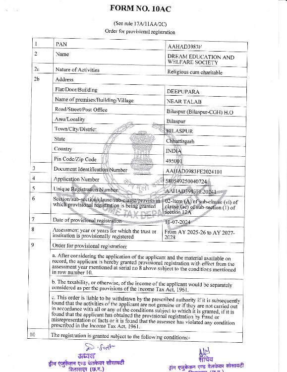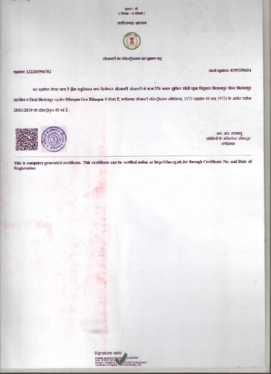 Society Registered Under Society Act 1983 -Territory Chhattisgarh